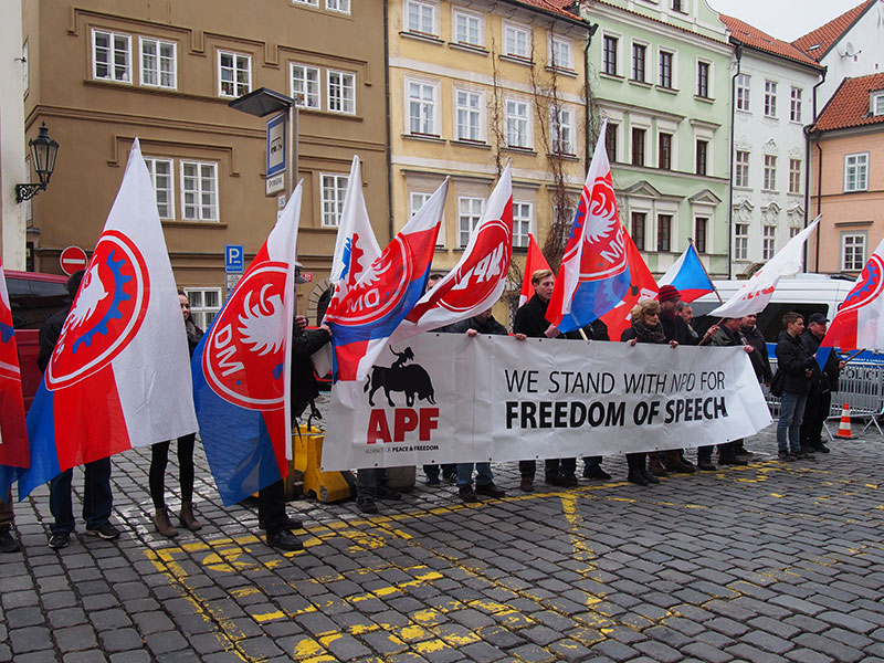 Last Saturday, nationalists from several countries organizes actions outside of the German embassies in support of NPD and in support of freedom of speech. We have already reported on the website that demonstrations occurred in Brussels and Madrid, but also in Prague the APF partner, DSSS, organized an action outside of the German embassy.