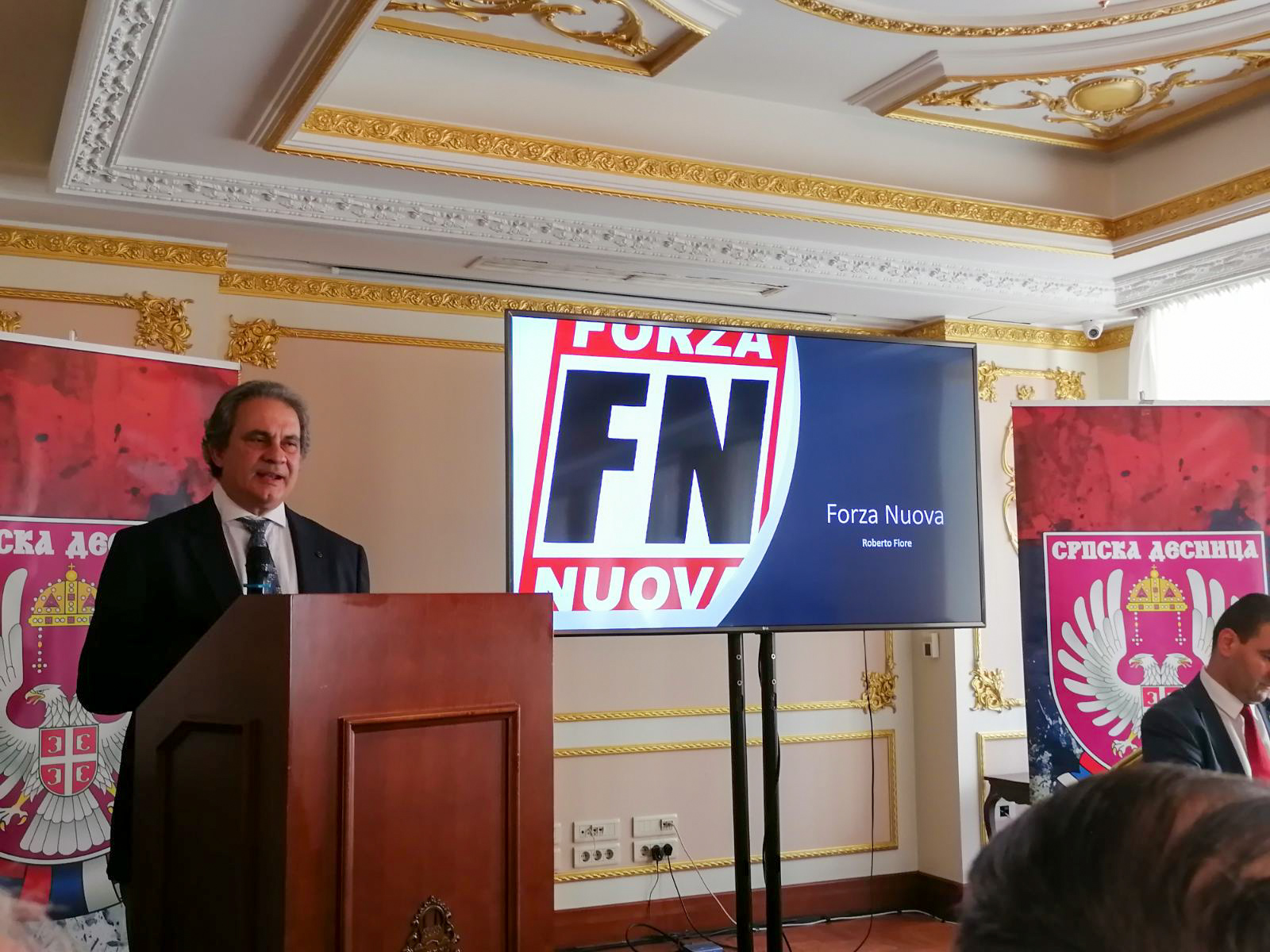 On September 26th in Belgrade in the hall of the Hotel Moscow a conference on “Nation of Europe” was held; this event was attended by Mr Ivan Benedetti of the French PNF, Mr Claus Cremer NPD, Mr Manuel Andrino for the Falange, Gonzalo Martín García for Democracia Nacional, Forza Nuova with the President of the APF Roberto Fiore Mr Yiannis Zografos of Greek Elasyn, Mr Cristi Grigoraș for Noua Dreapta, the Serbian SDP with its leader Misha Vacic and finally a large Russian delegation including some war veterans.